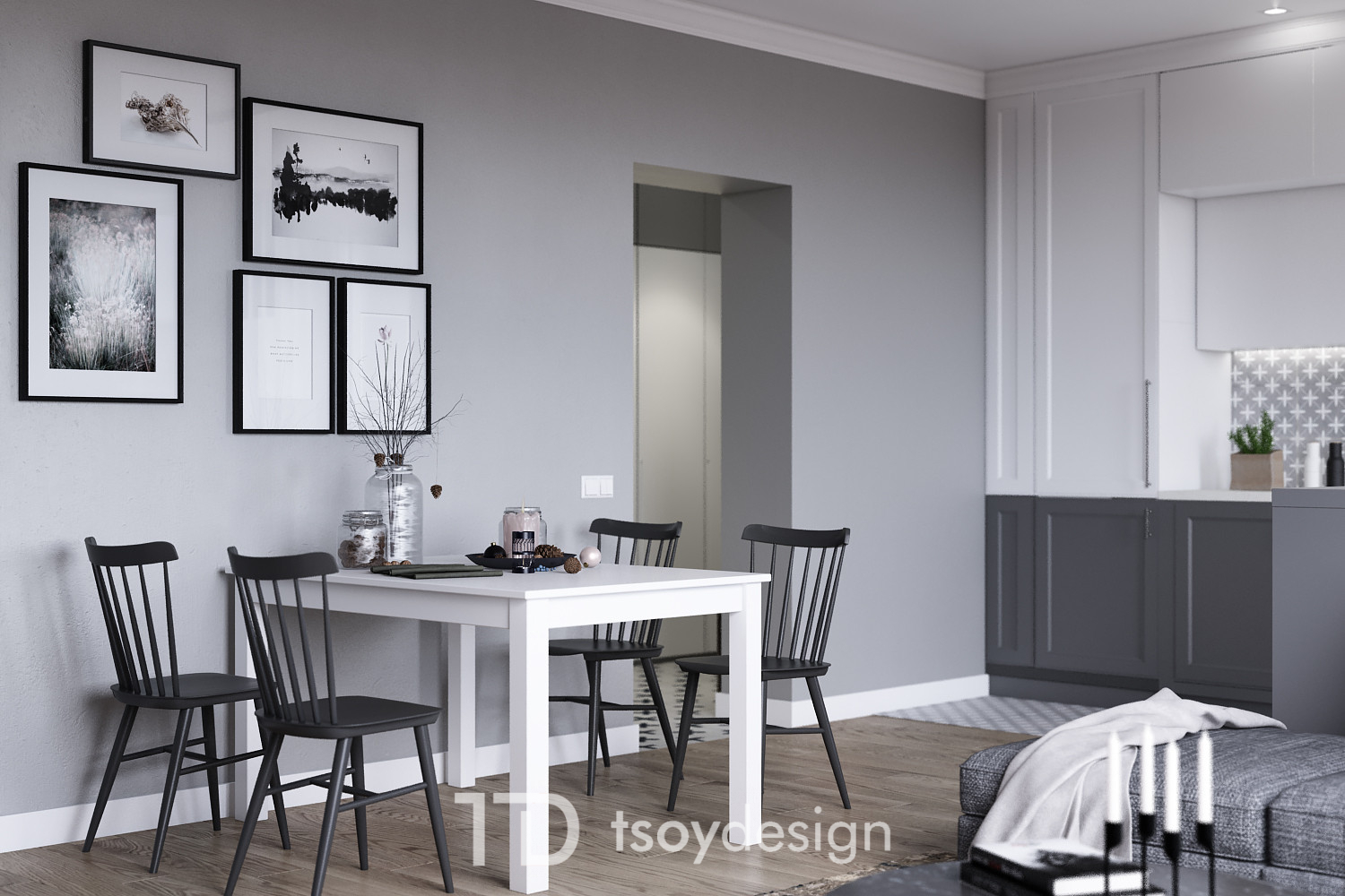 Tsoy design interior дизайн интерьера современной гостиной кухни в серых тонах студия